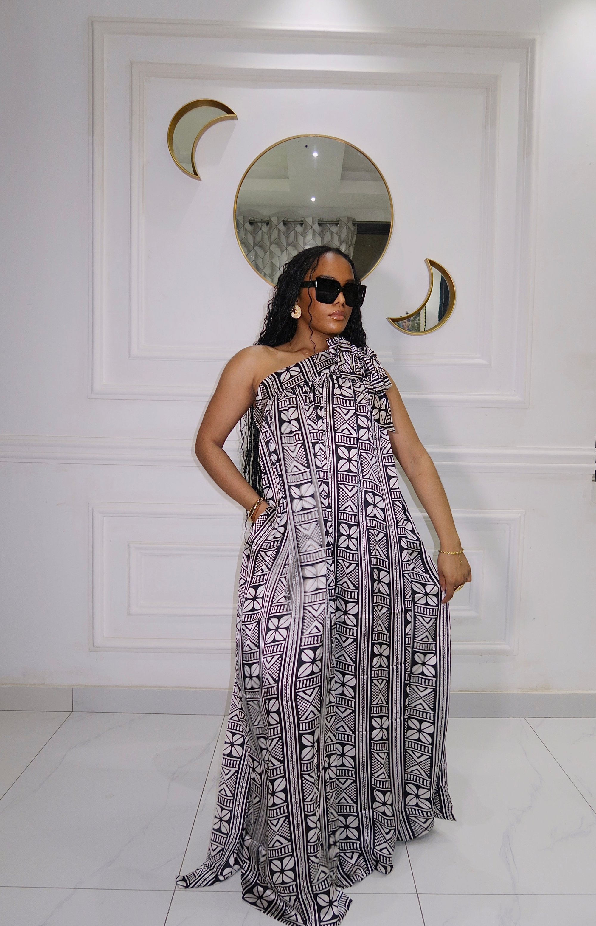 Longue robe avec une manche ajustable sur le côté afin d’adapter à toutes les tailles et morphologies.